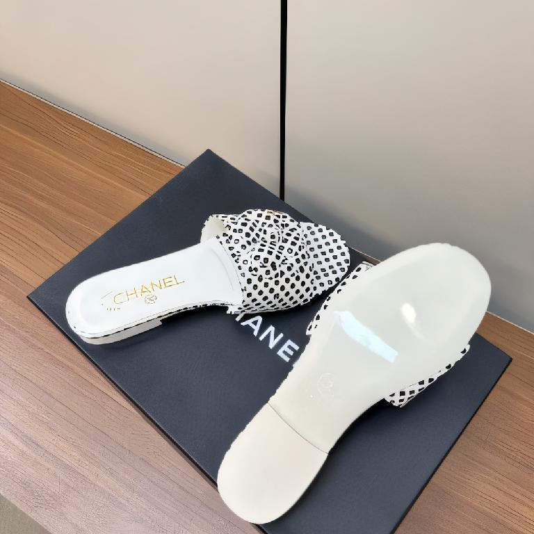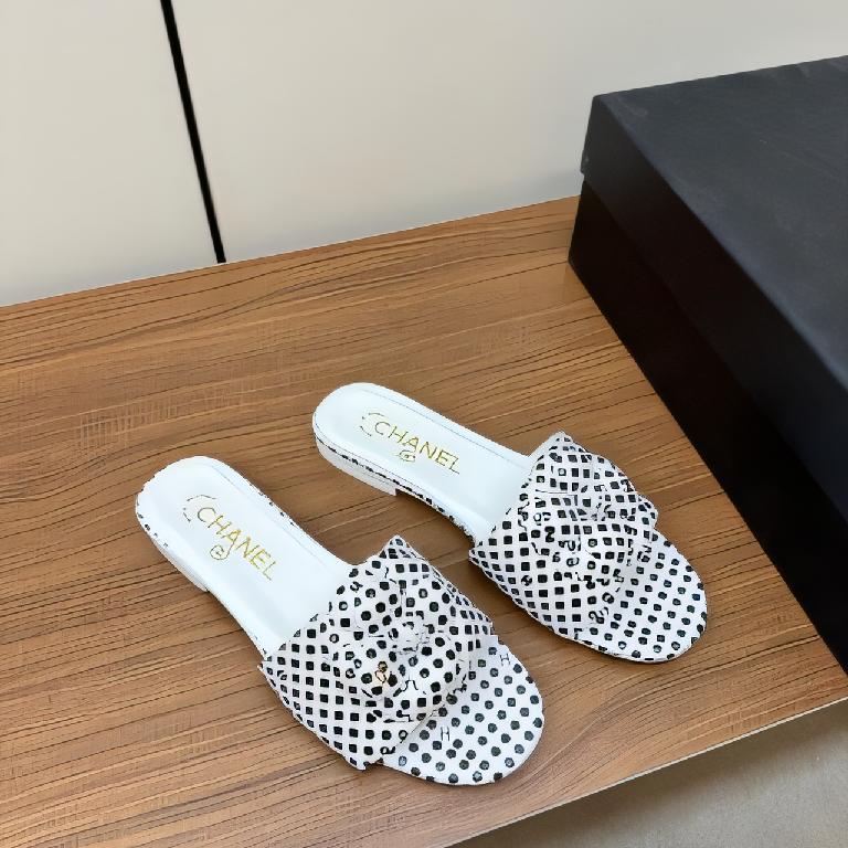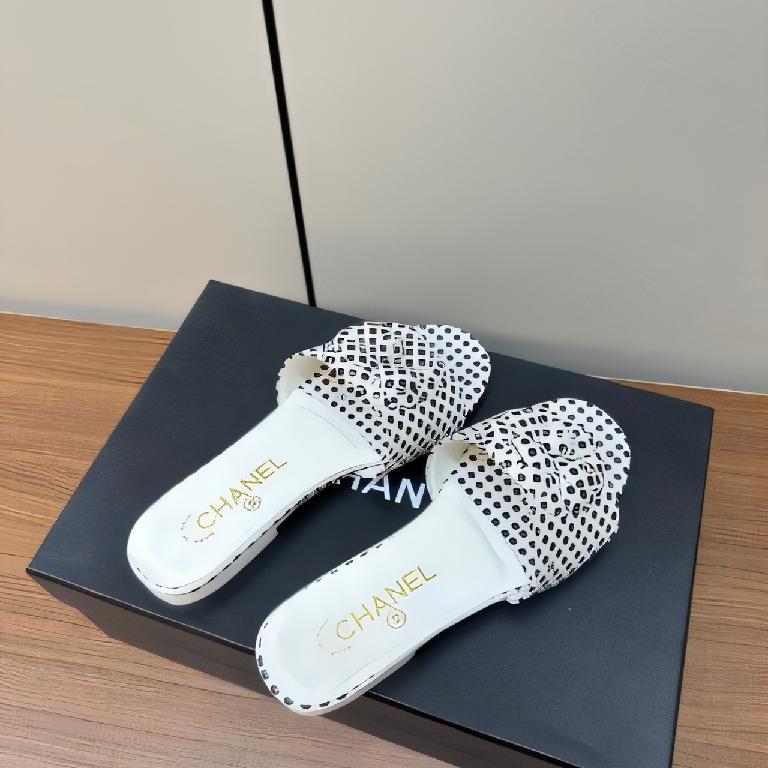 Chanel 小香24ss春夏新品山茶花拖鞋白色波点