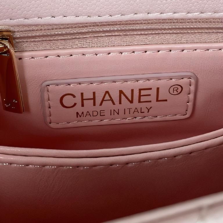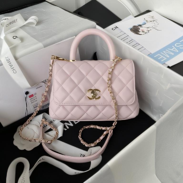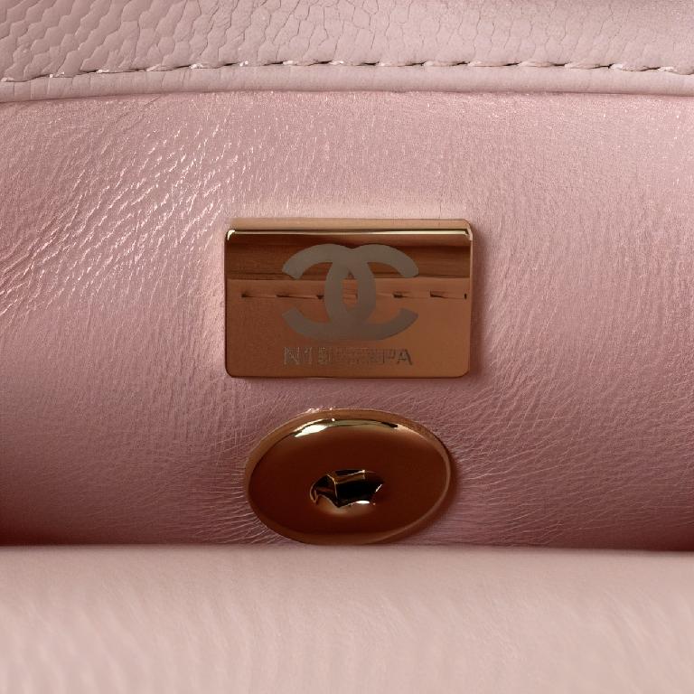 Chanel Extra Mini Coco Handle 浅粉色鱼子酱粒面小牛皮金扣链条手提斜挎包