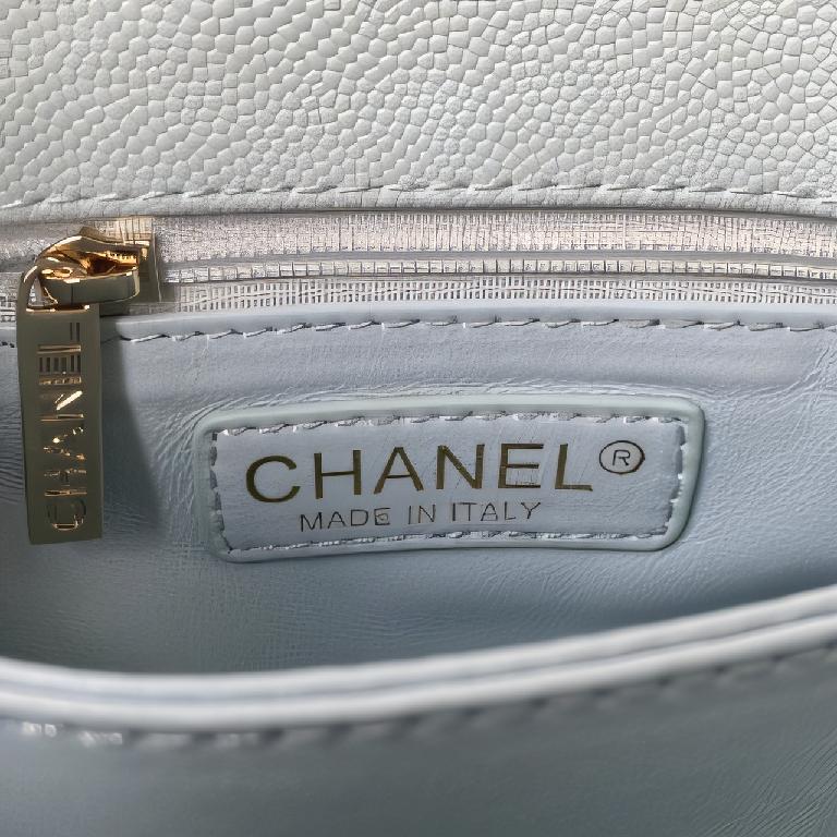 Chanel Extra Mini Coco Handle 白色鱼子酱粒面小牛皮金扣链条手提斜挎包