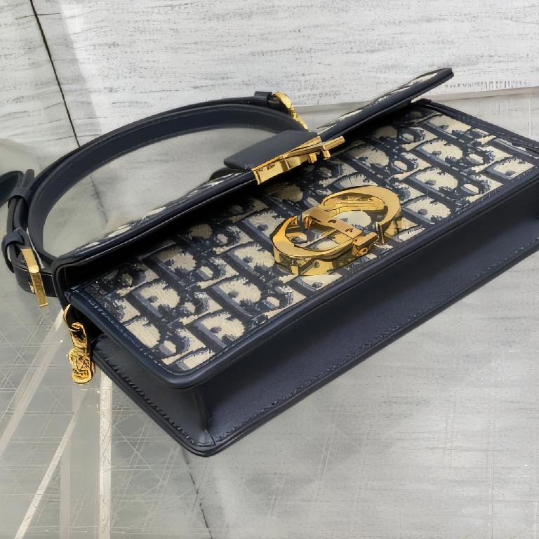 Christian Dior Bobby East-West Mini 蓝色 Oblique 老花帆布配皮手提斜挎包
