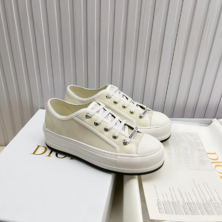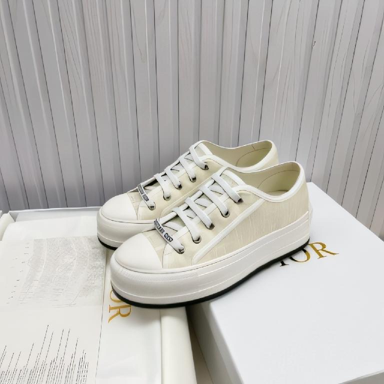 Dior B23 Low-Top Sneakers 米白色全刺绣 Oblique 老花图案平底休闲运动鞋