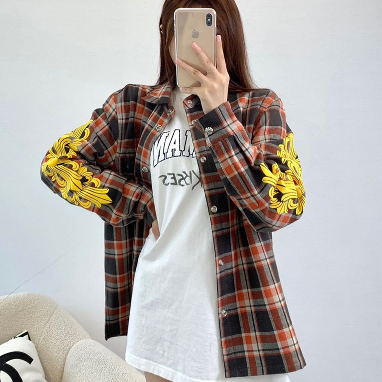 Chorme Hearts克罗心CH 23新款 手臂印花格子棉服橙黄