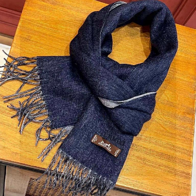 HERMFS【爱马仕】巴黎时装展双面羊绒围巾!蓝色款