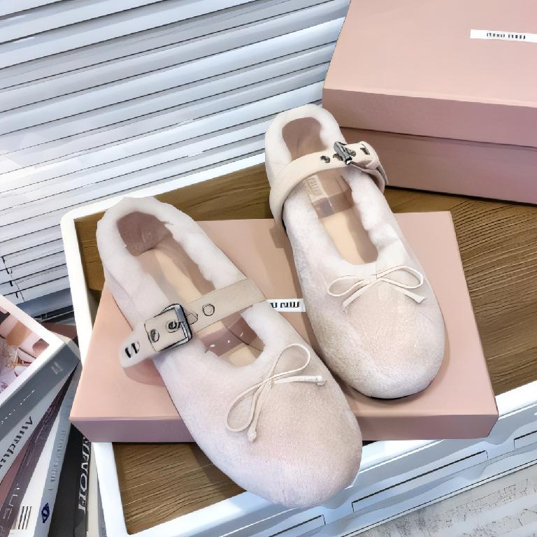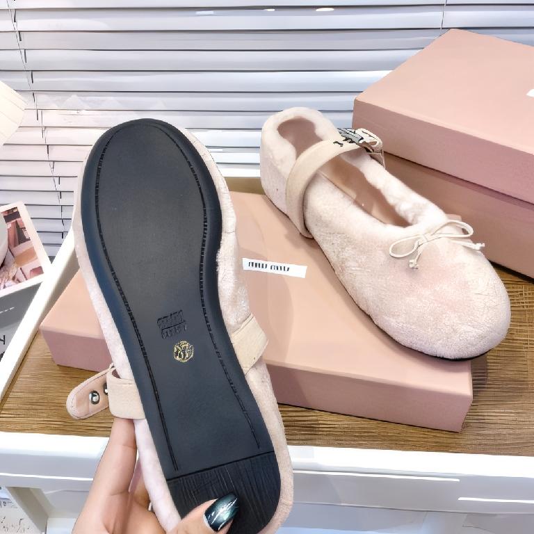 Miu Miu 缪缪法式仙女玛丽珍平底毛毛鞋小单鞋粉色