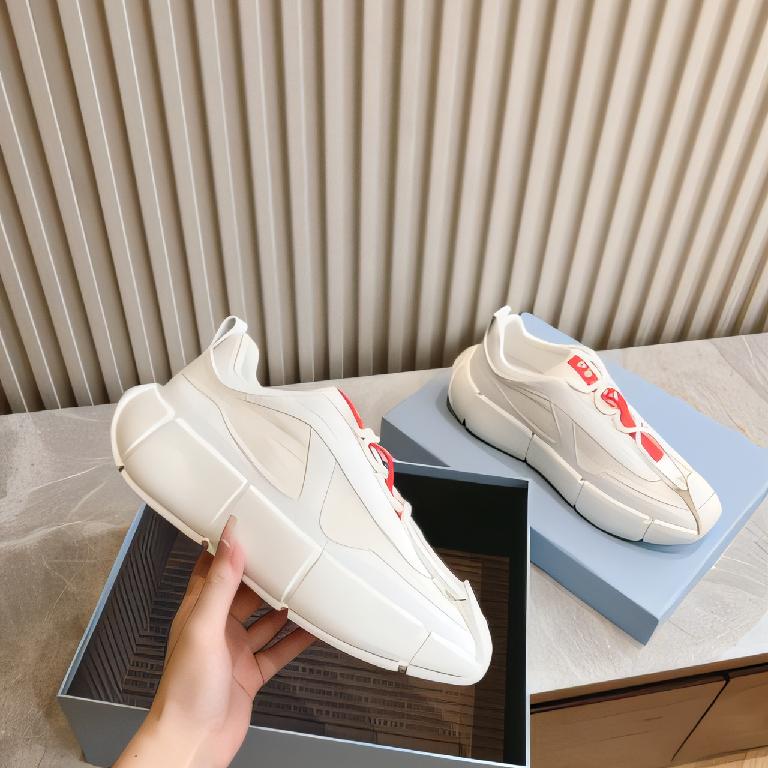 PRADA普拉达男士系带皮革休闲运动鞋白色