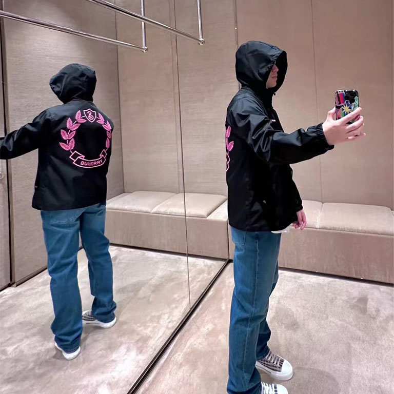 Burberry 23ss 橡树叶印花连帽风衣外套