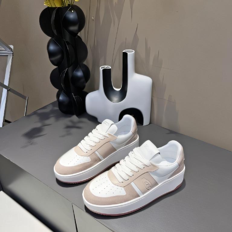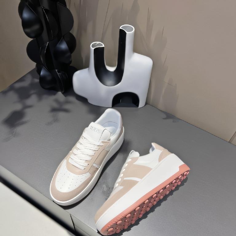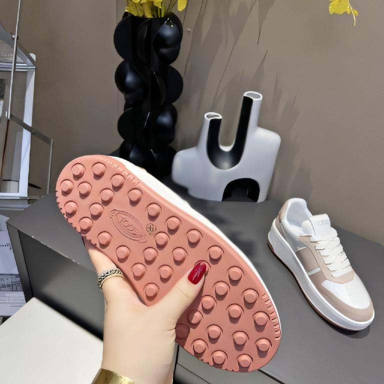 TODS托德斯24年最新爆款51K饼干鞋豆豆底拼色休闲运动鞋 白粉配色