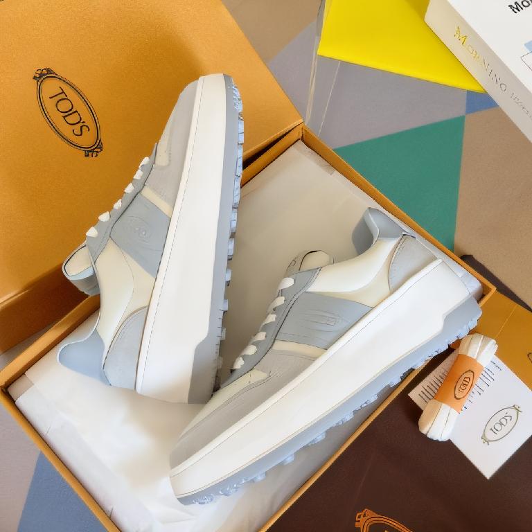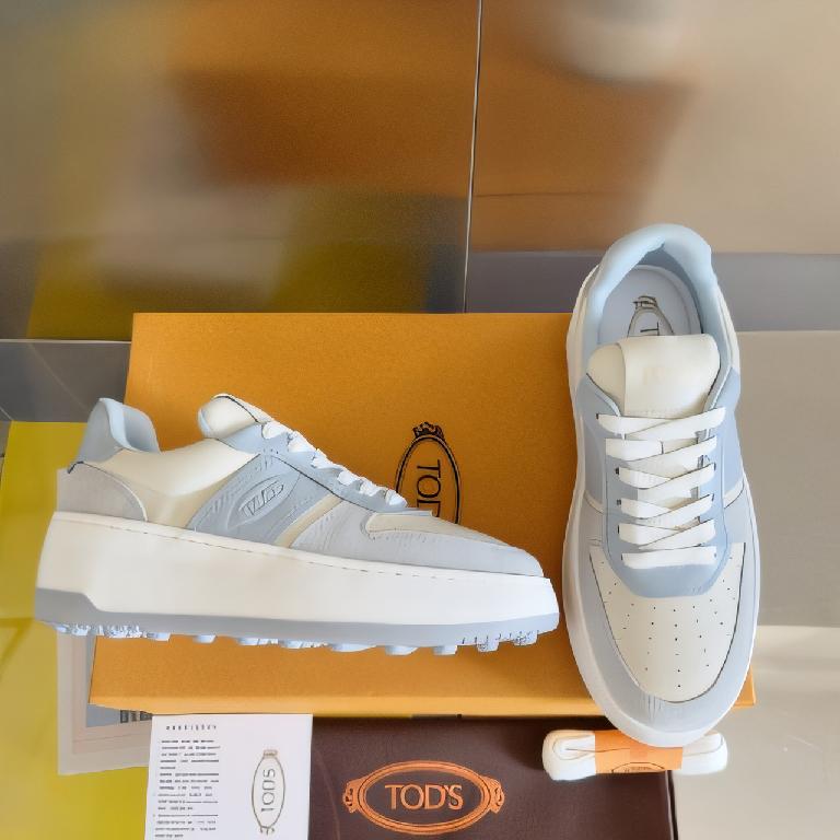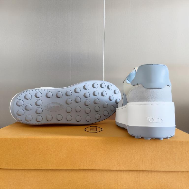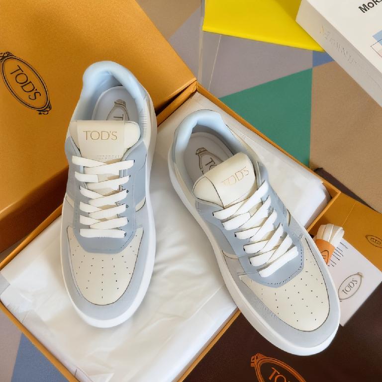 TODS托德斯24年最新爆款51K饼干鞋豆豆底拼色休闲运动鞋 浅蓝色