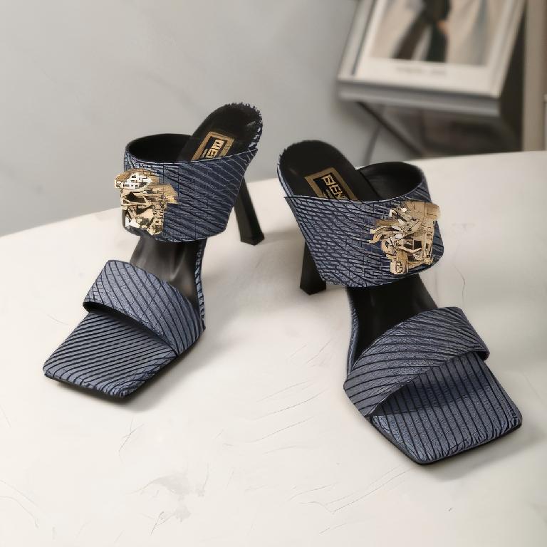 Versace Medusa Cross-Strap High-Heel Mules(范思哲美杜莎交叉带高跟穆勒鞋)蓝黑条纹拼色