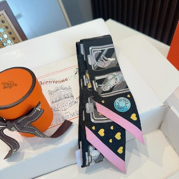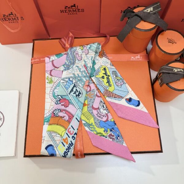 爱马仕水上游乐园Twilly小丝巾 束发带 绿粉撞色