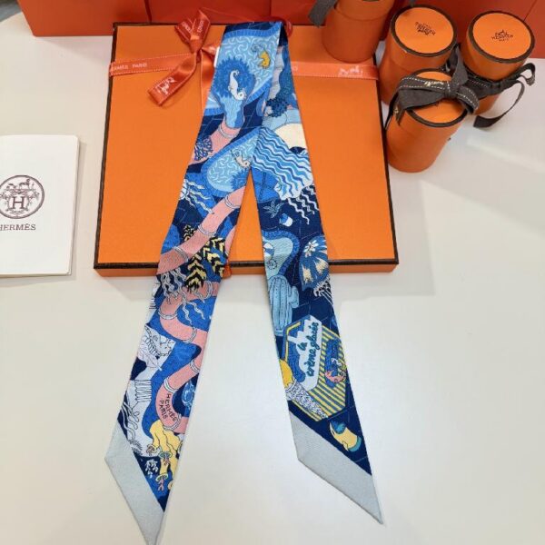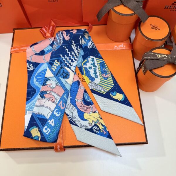 爱马仕水上游乐园Twilly小丝巾 束发带 蓝色