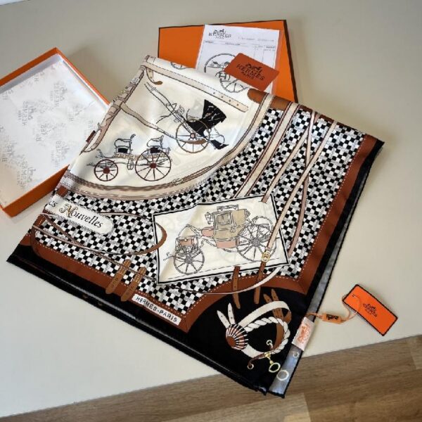 爱马仕真丝方巾【新式座驾】黑白棕撞色