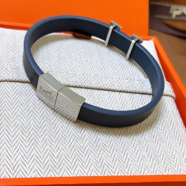 爱马仕(Hermès)皮革 H 扣手镯 暗蓝色