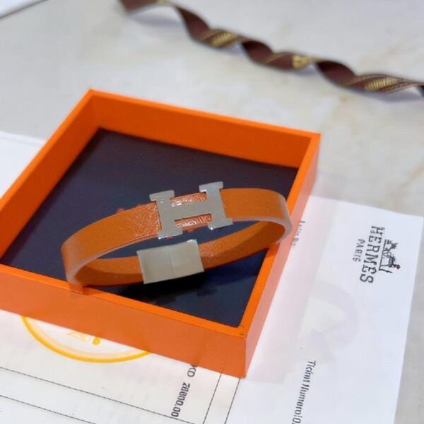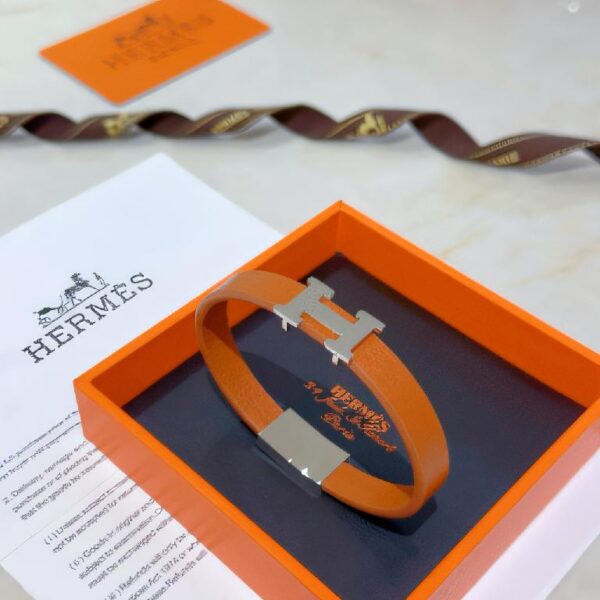 爱马仕(Hermès)皮革 H 扣手镯 橙色