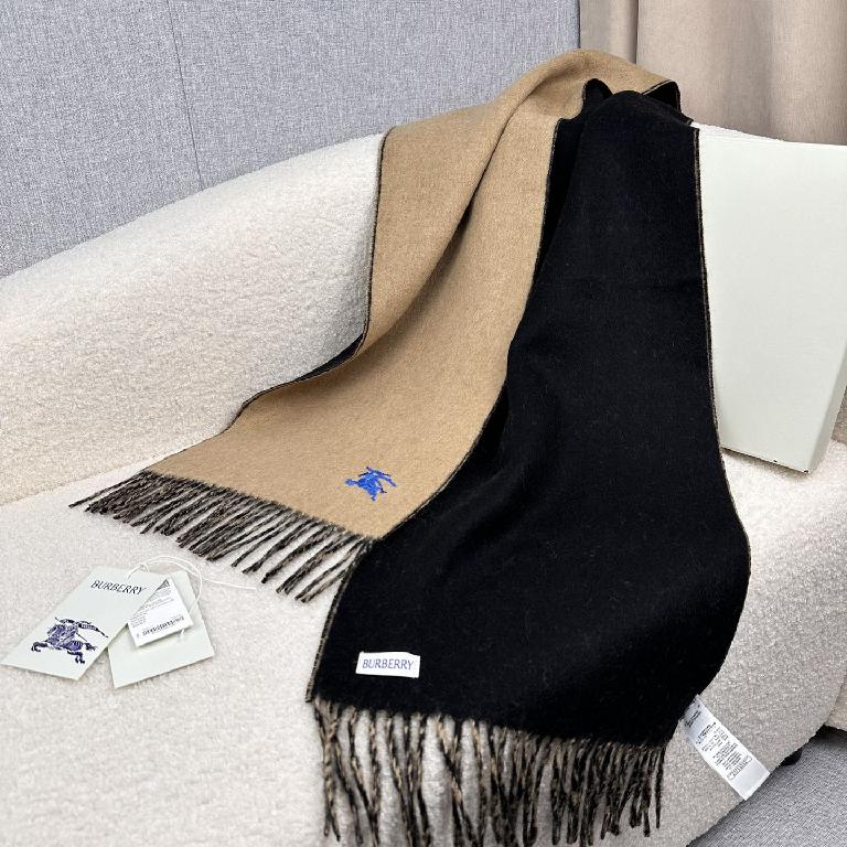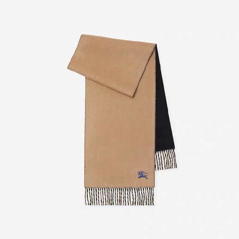 巴宝莉(Burberry)新款刺绣双面曲线羊绒围巾 黑棕拼色