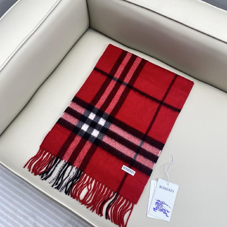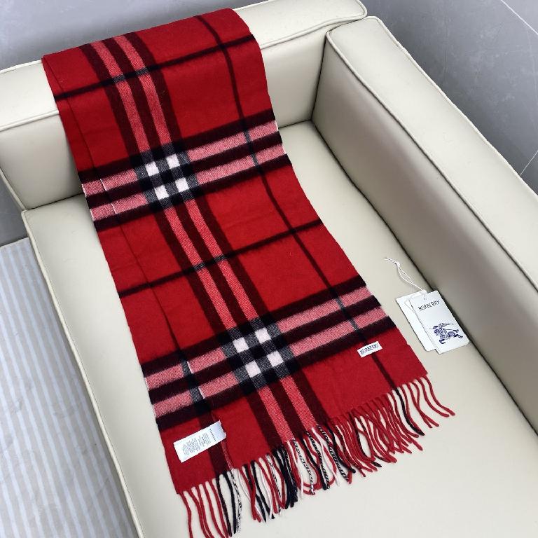 巴宝莉(Burberry)经典格子羊绒围巾 正红色