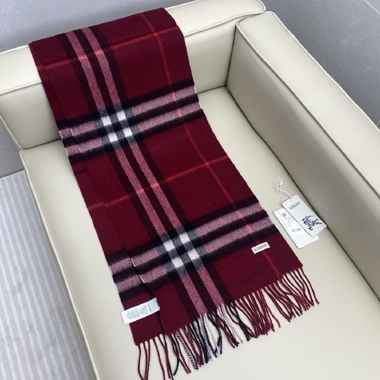 巴宝莉(Burberry)经典格子羊绒围巾 酒红色