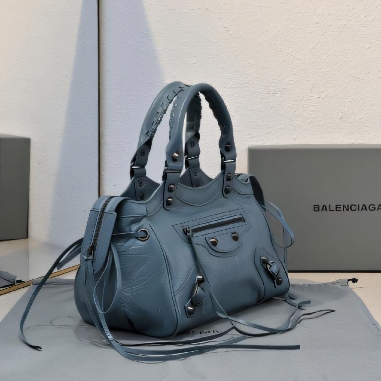 巴黎世家 Balenciaga Le City 机车包 灰蓝色