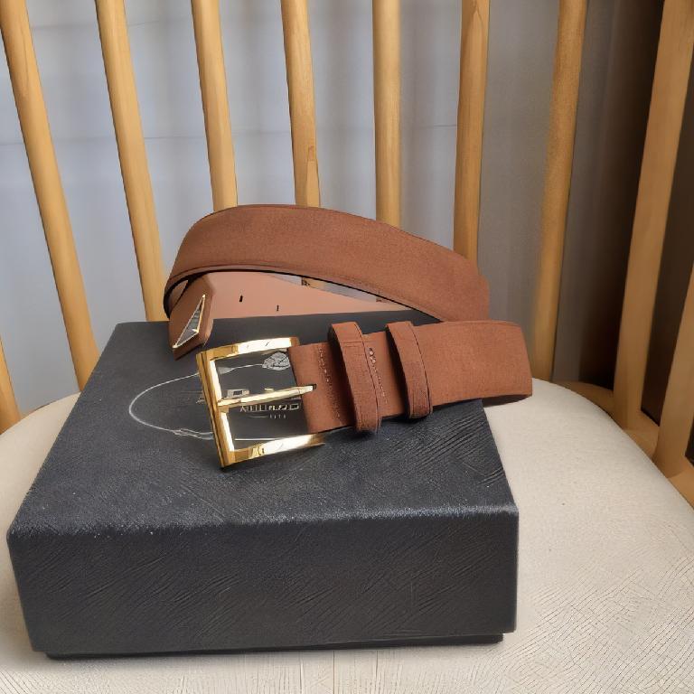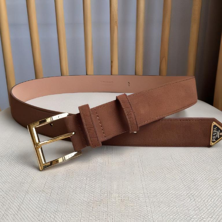 普拉达(Prada)褐色绒面革金色板扣男士腰带