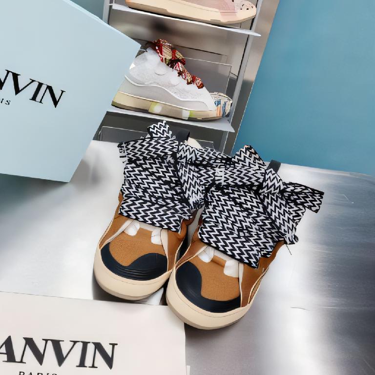 浪凡(LANVIN)Curb 系列蝴蝶结装饰格纹厚底休闲鞋(格纹拼接配色款)