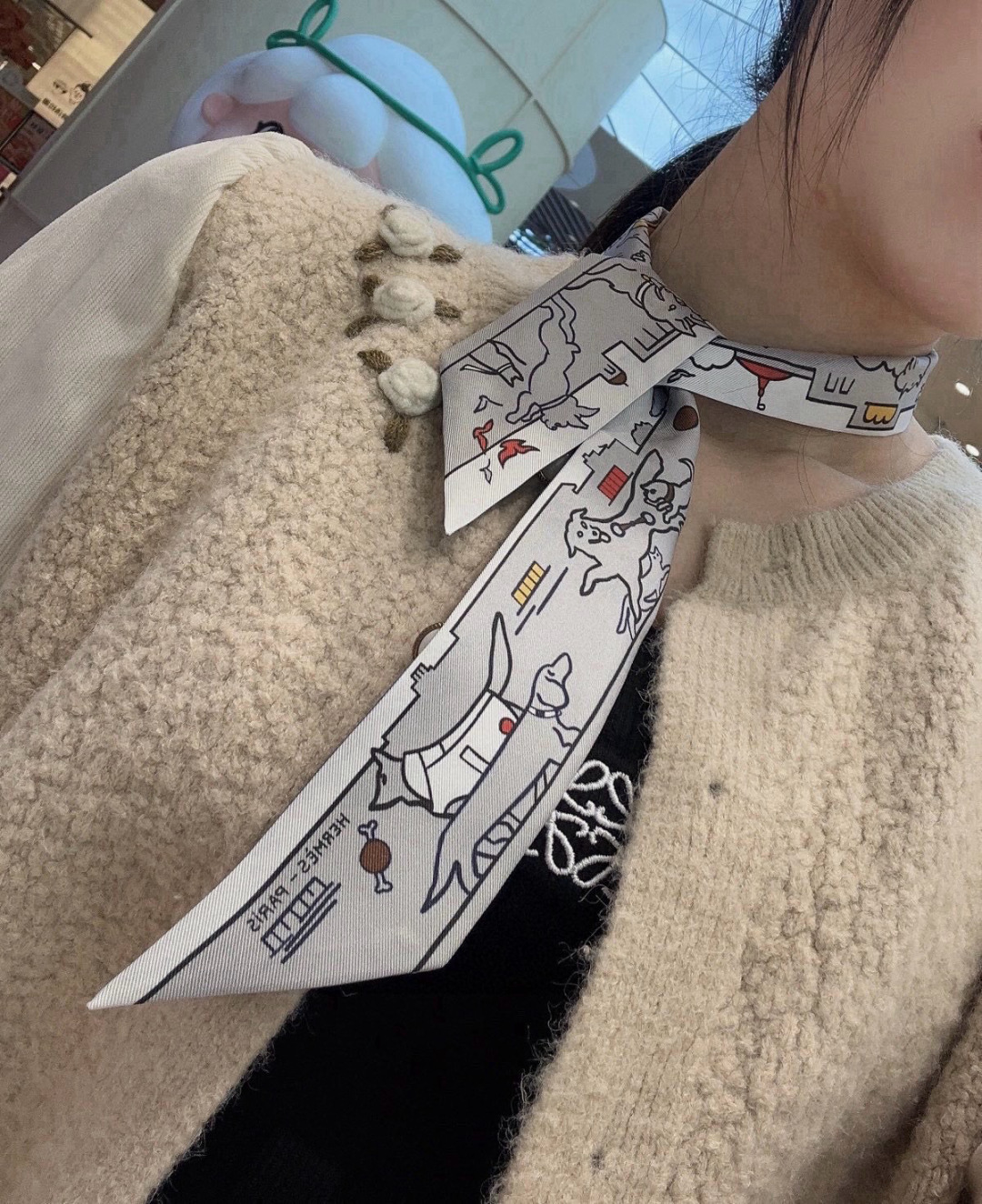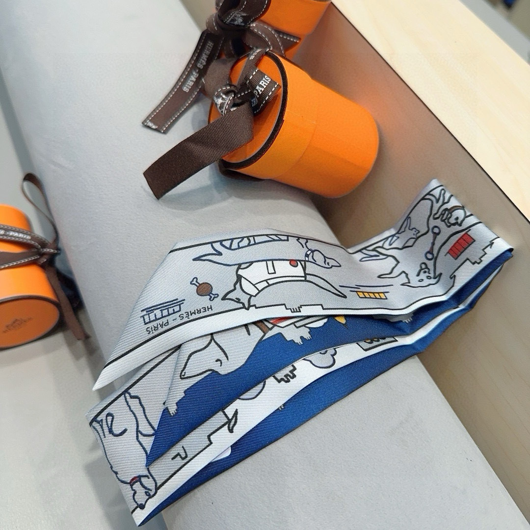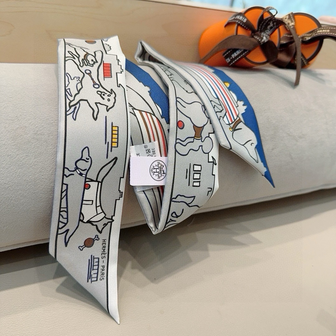 爱马仕《巴黎爱犬》束发带 蓝灰撞色