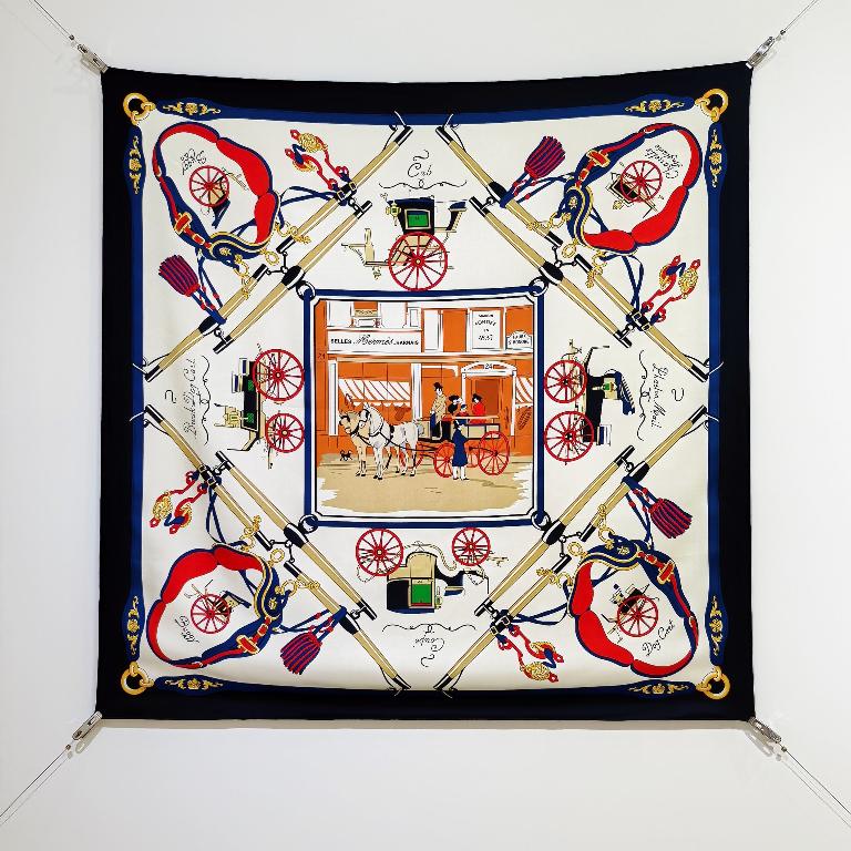 爱马仕《驾马横挡》斜纹真丝 蓝白色方巾