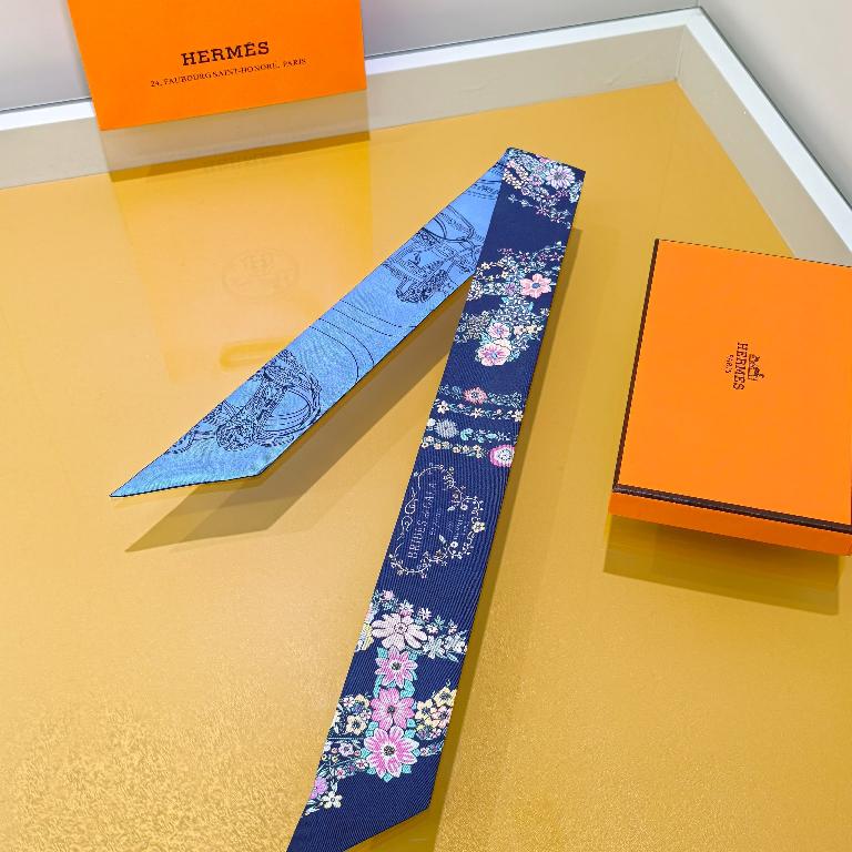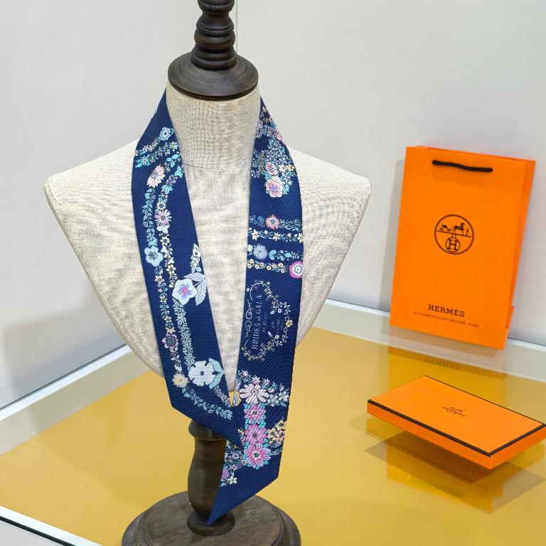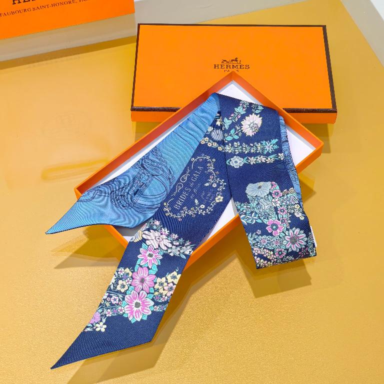爱马仕【华丽的缰辔花卉版】小丝巾 蓝色