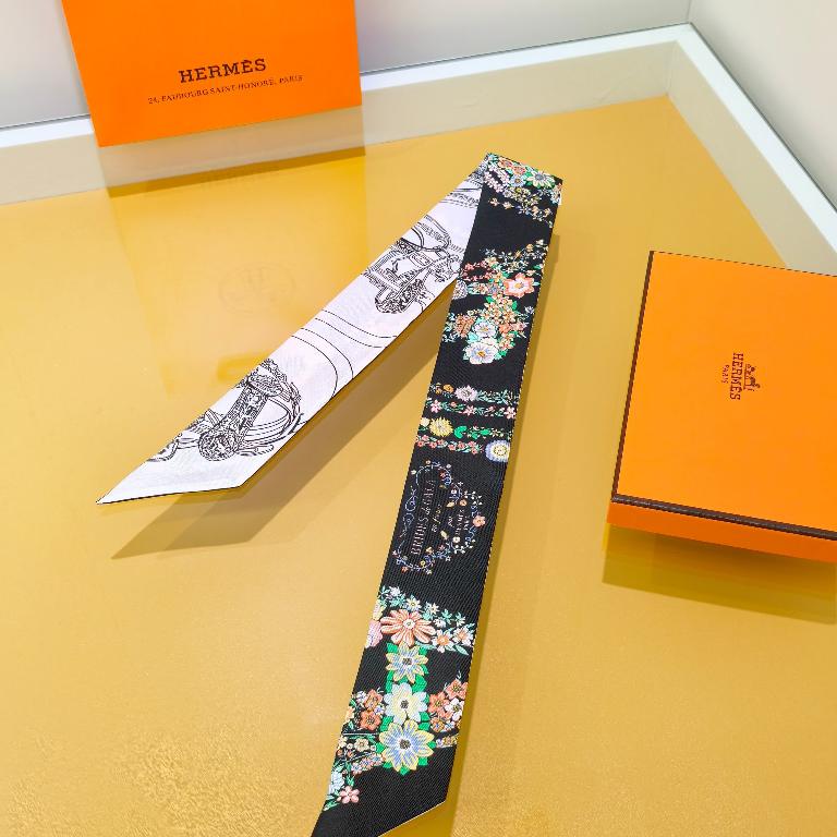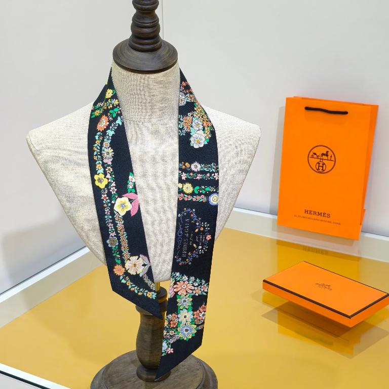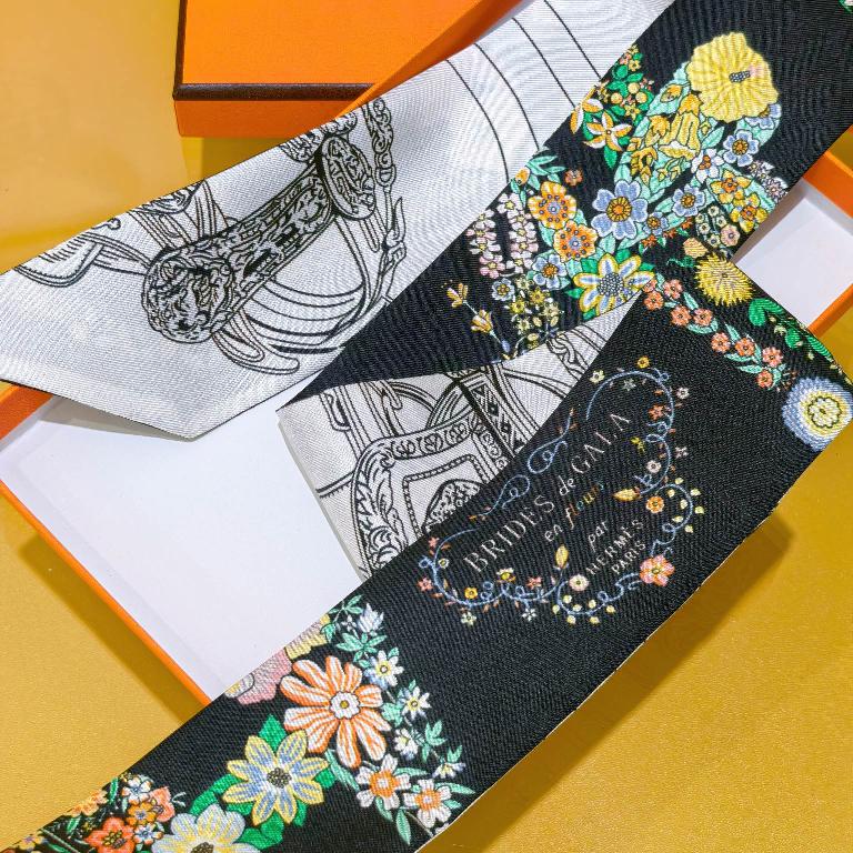 爱马仕【华丽的缰辔花卉版】小丝巾 黑灰撞色