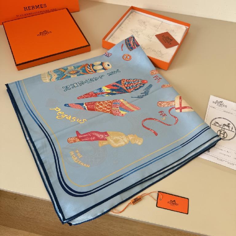 爱马仕冰淇淋真丝方巾 浅蓝色款