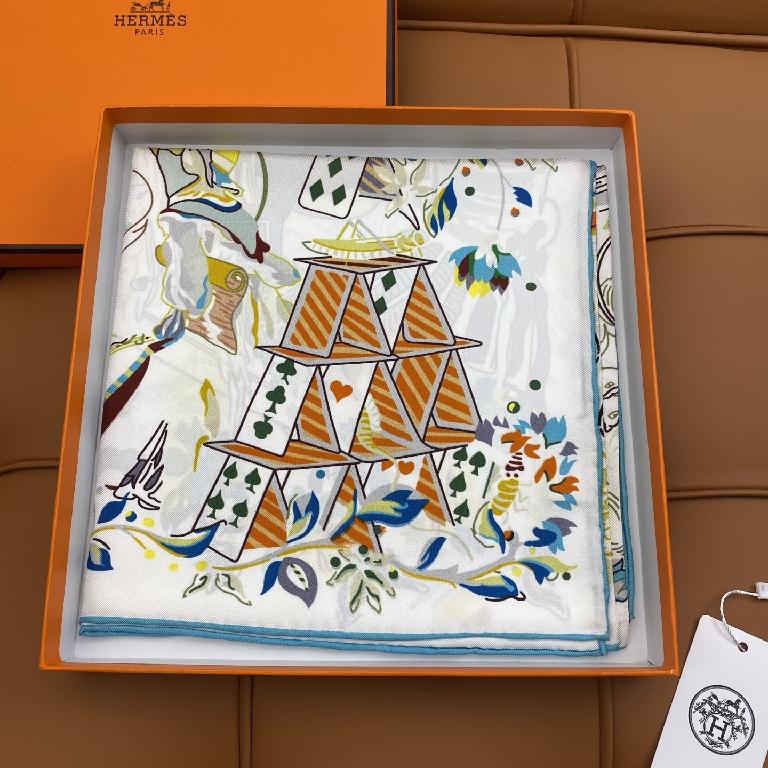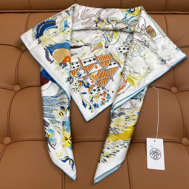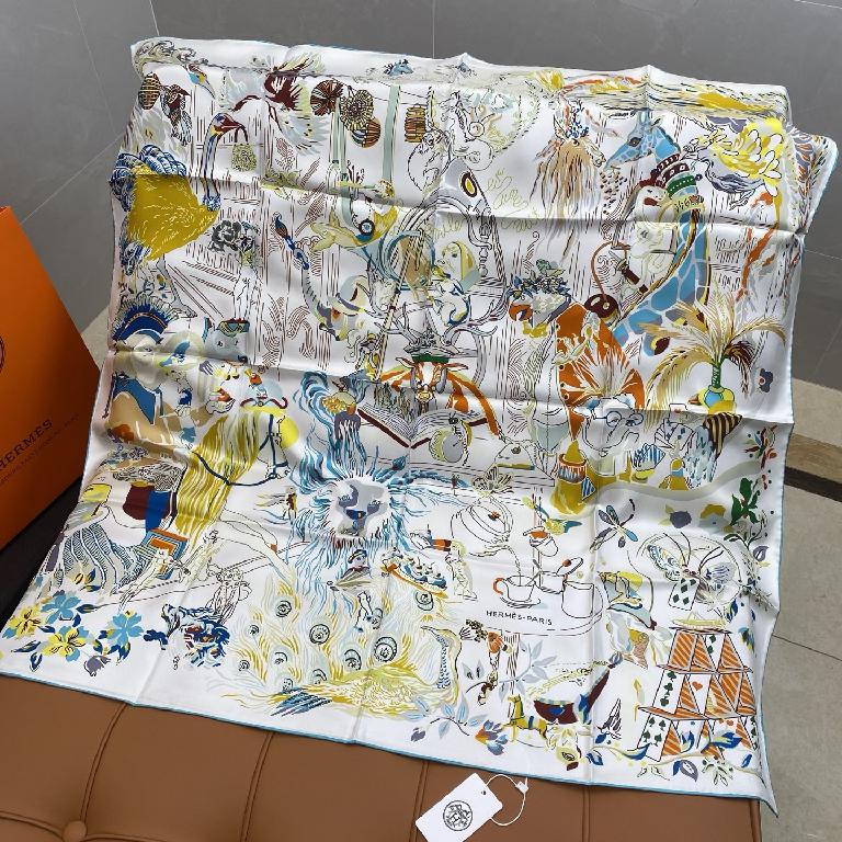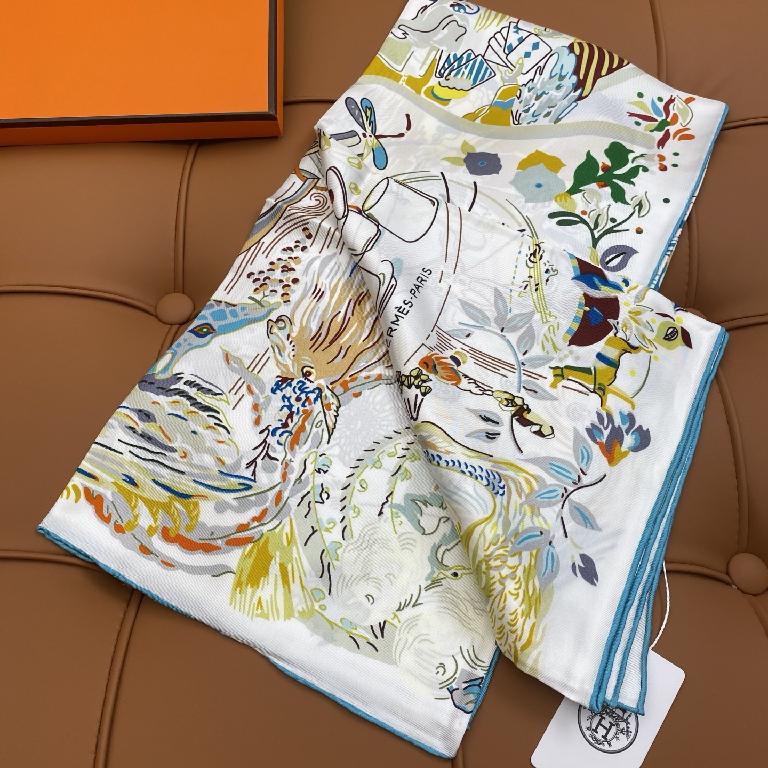 爱马仕双面丝印 斜纹真丝方巾 白色款