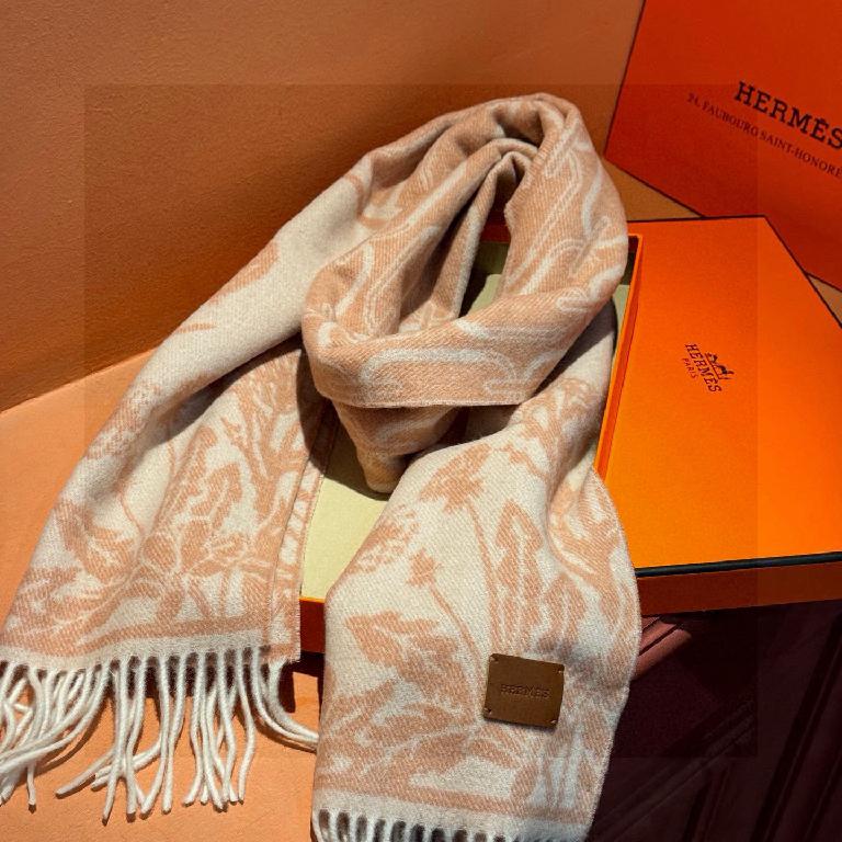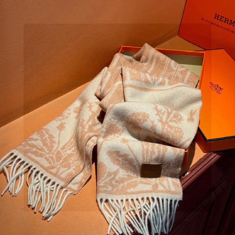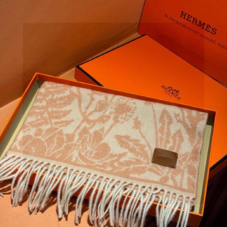 爱马仕巴黎时装展商务男士女士羊绒围巾 浅橙色款