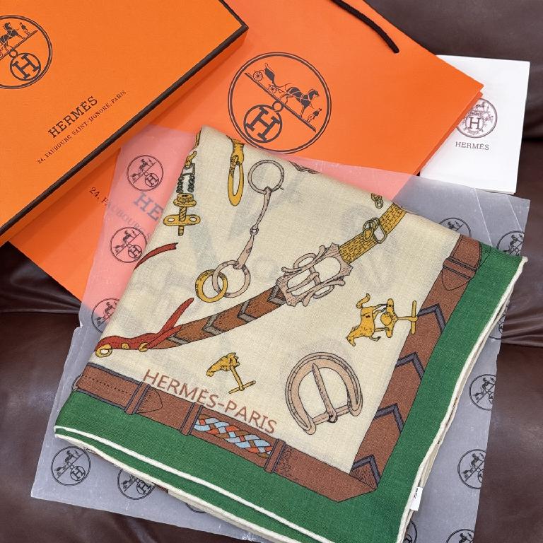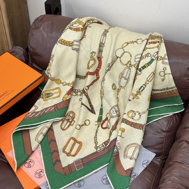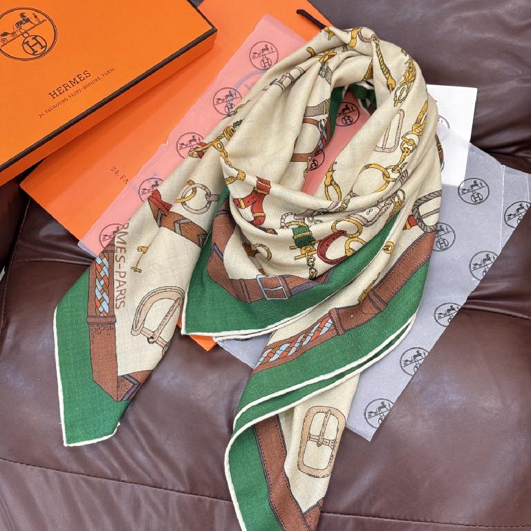 爱马仕140cm双面同色羊绒方巾 绿色边款