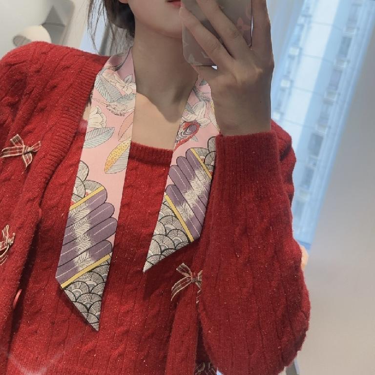 爱马仕Hermes树之歌小丝巾 飘带 粉紫撞色