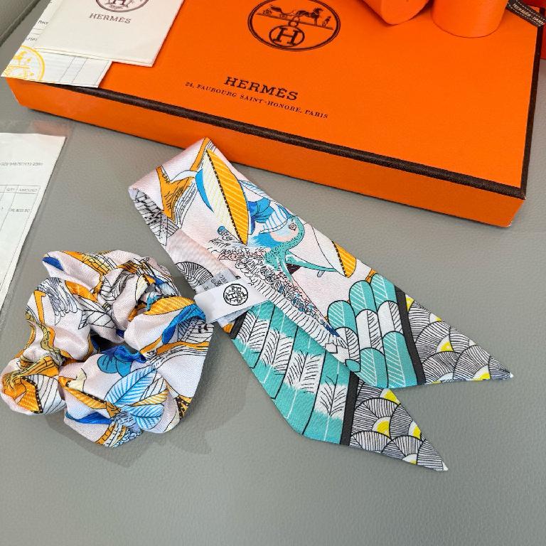 爱马仕Hermes “树之歌”发圈 束发带两用Twilly绿色小丝巾