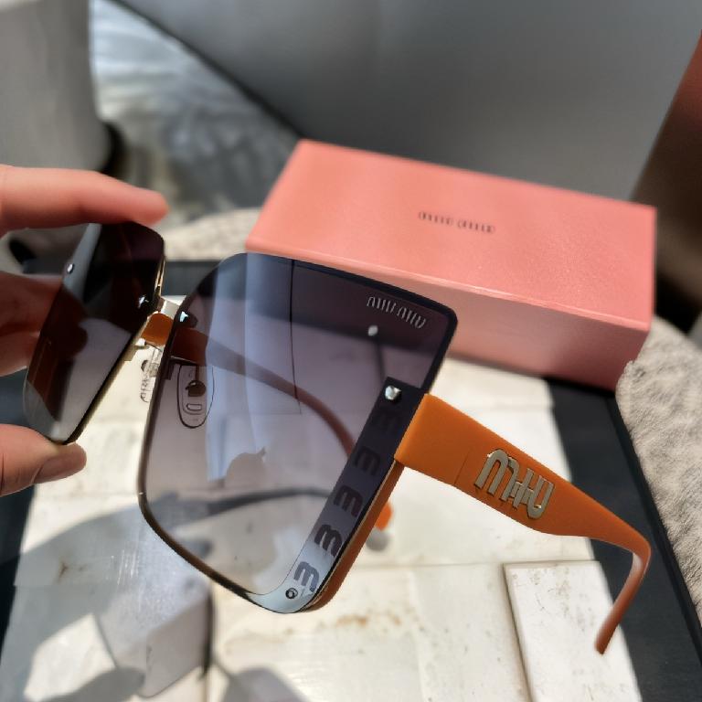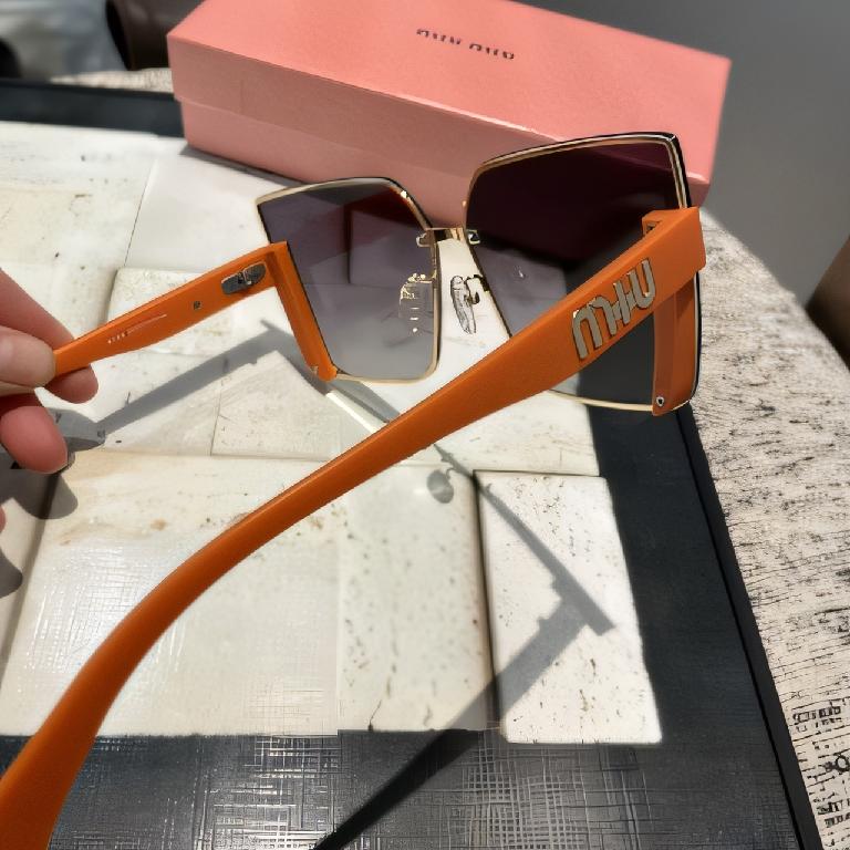 缪缪(Miu Miu)无框方形金属太阳镜(橙色镜腿款)