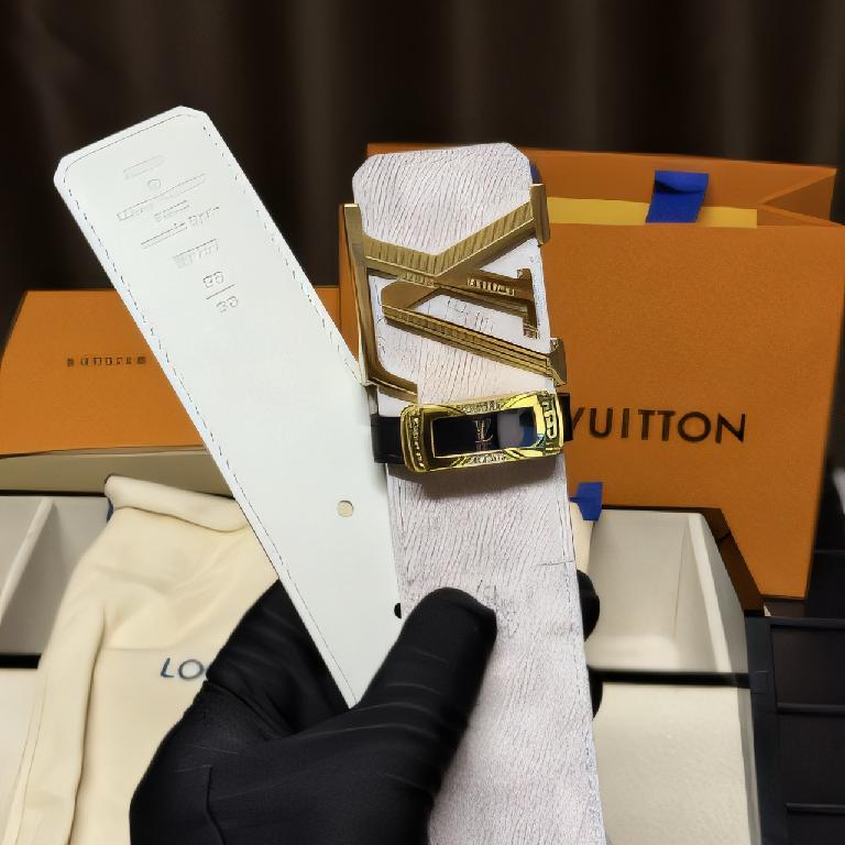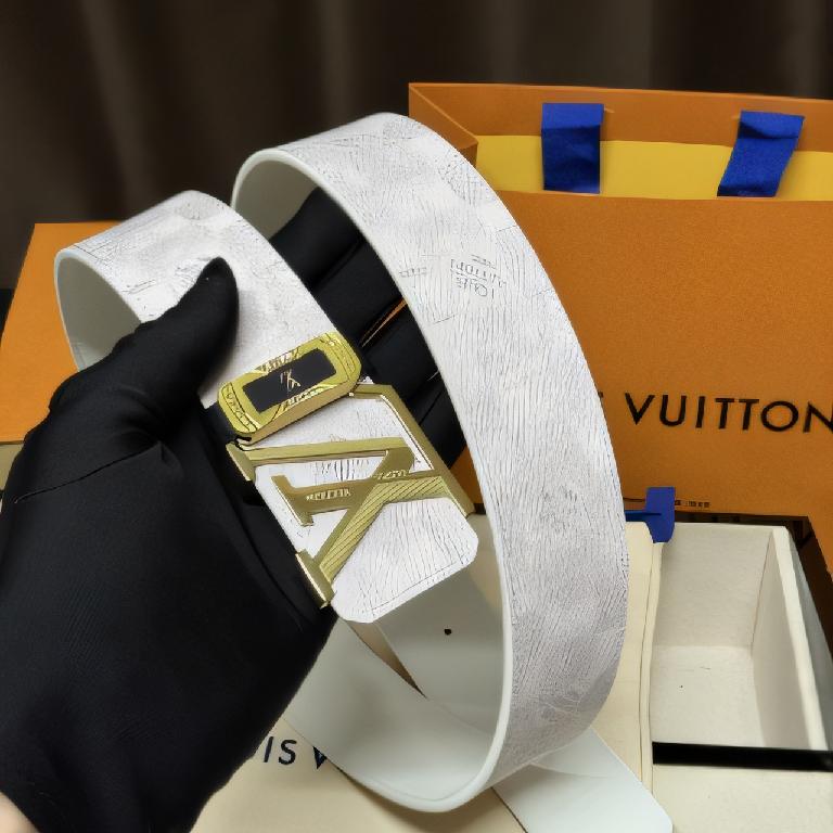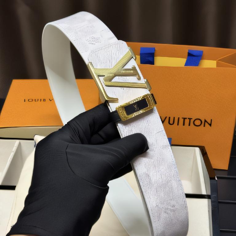 路易威登(Louis Vuitton)INITIALES 白色老花帆布金色扣腰带