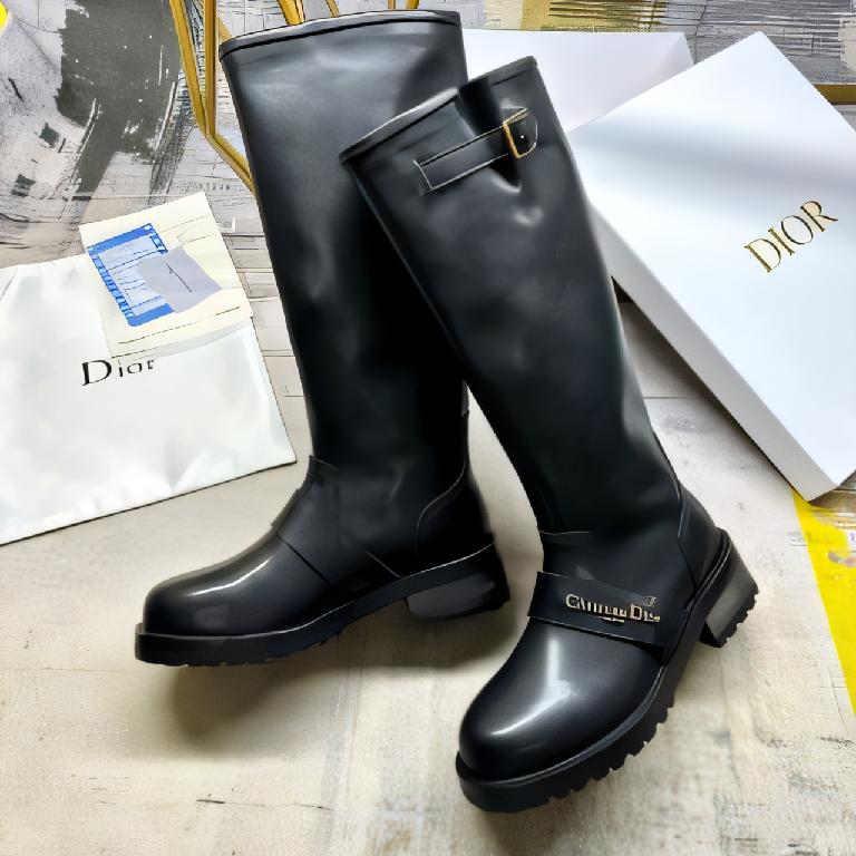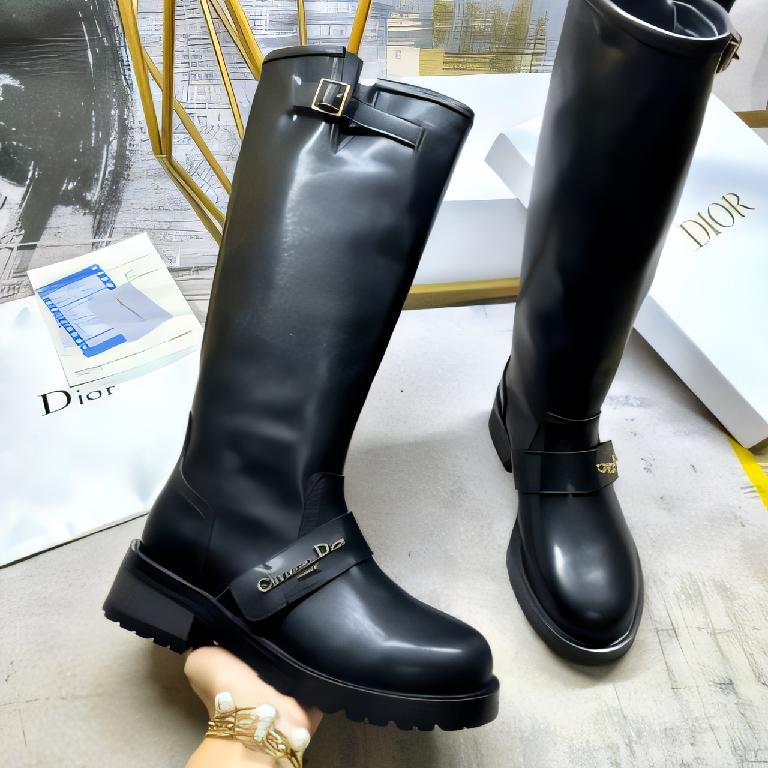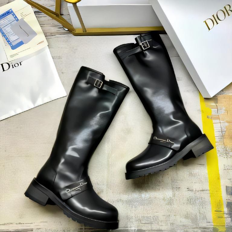迪奥(Dior)D-Quest 系列机车风厚底及膝长靴(黑色款)