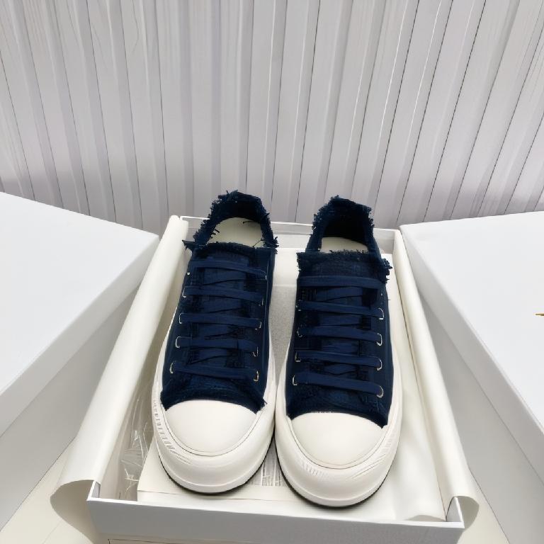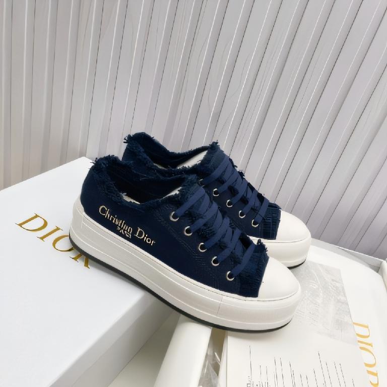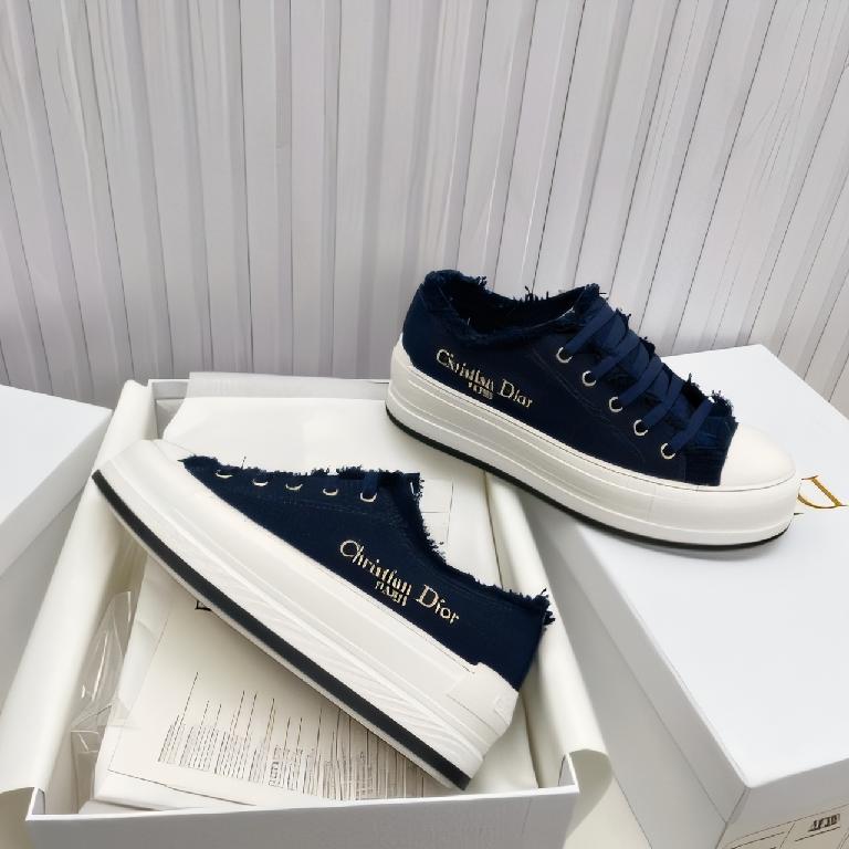 迪奥(DIOR)Walk’n’Dior 系列深蓝色 Oblique 印花棉质刺绣厚底帆布鞋