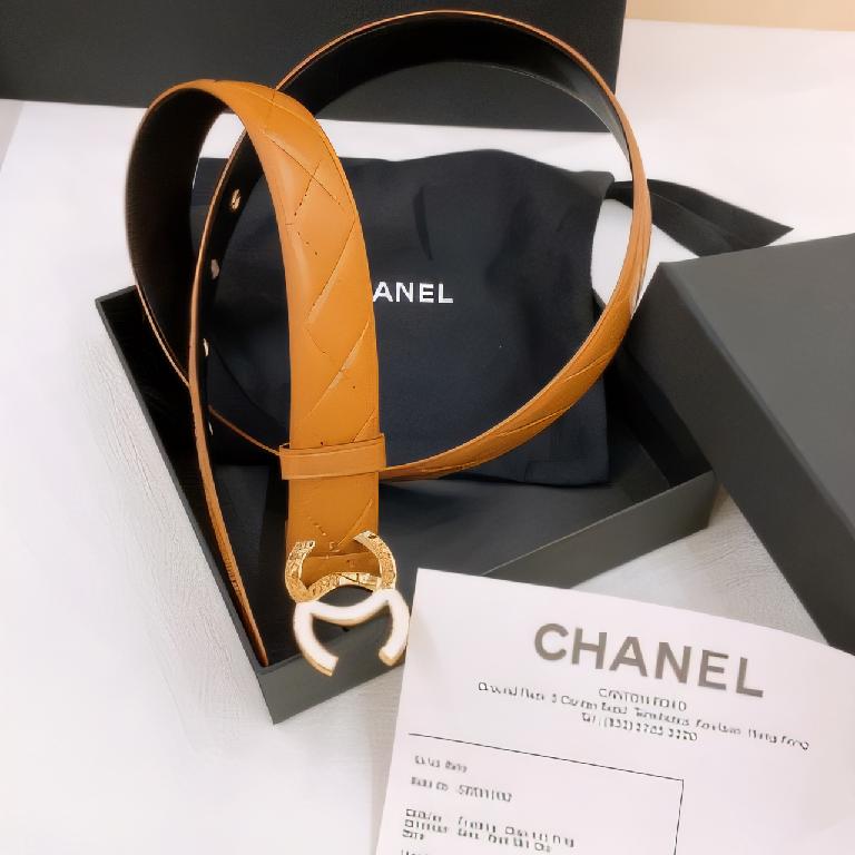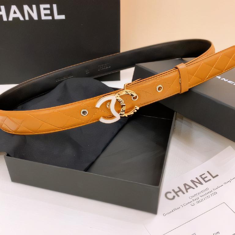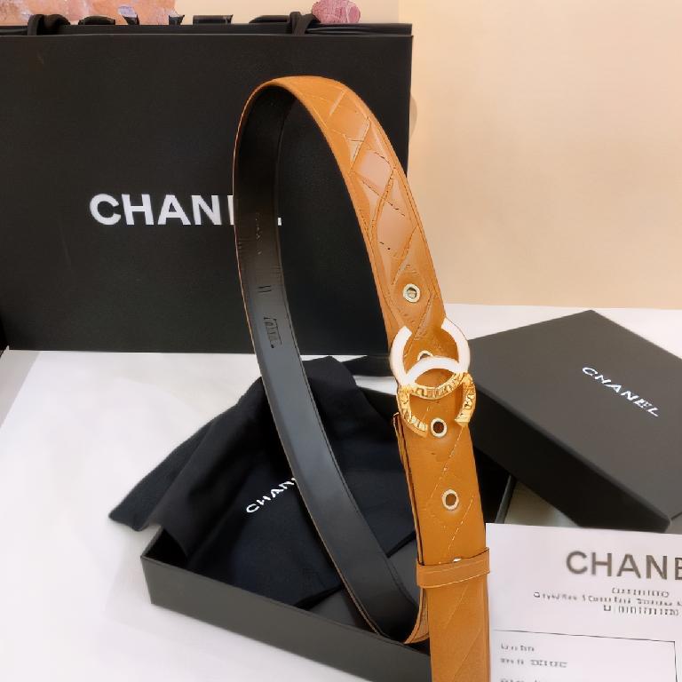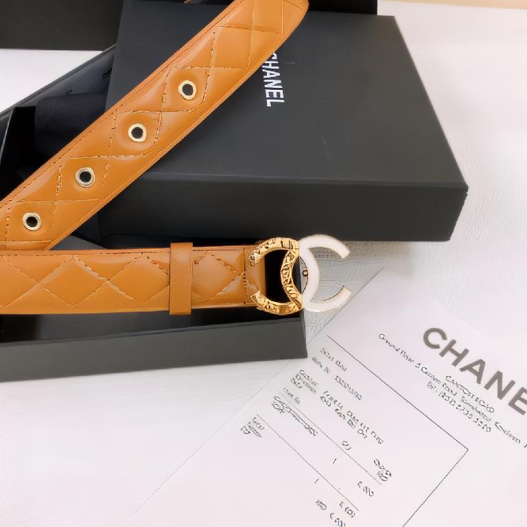 香奈儿(Chanel)棕色绗缝小牛皮双 C 链条扣女士腰带