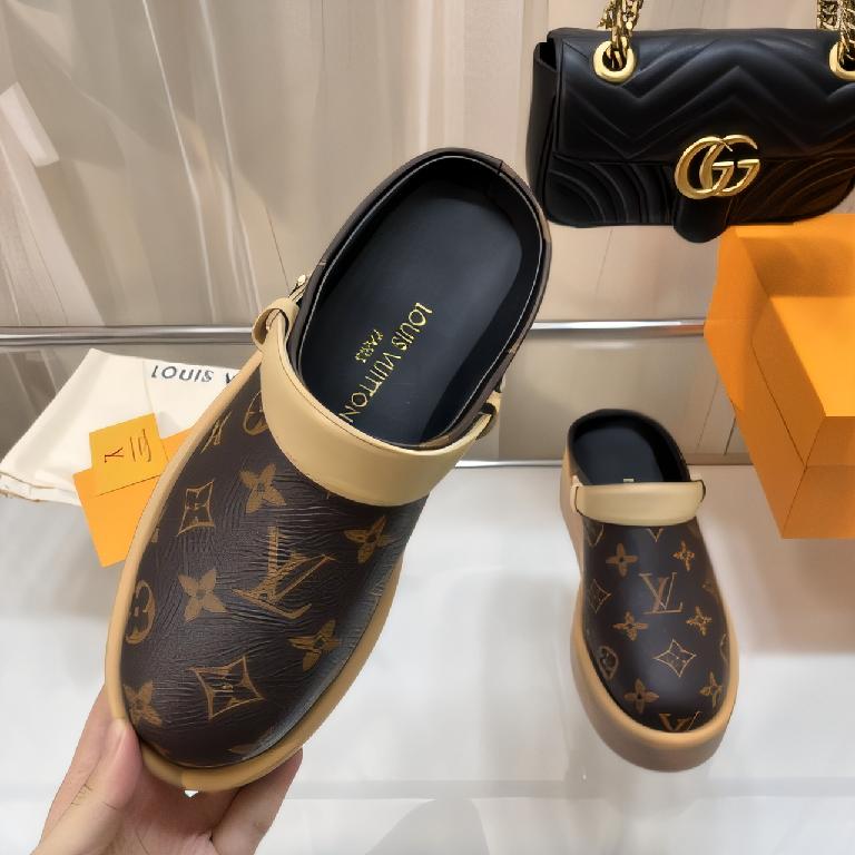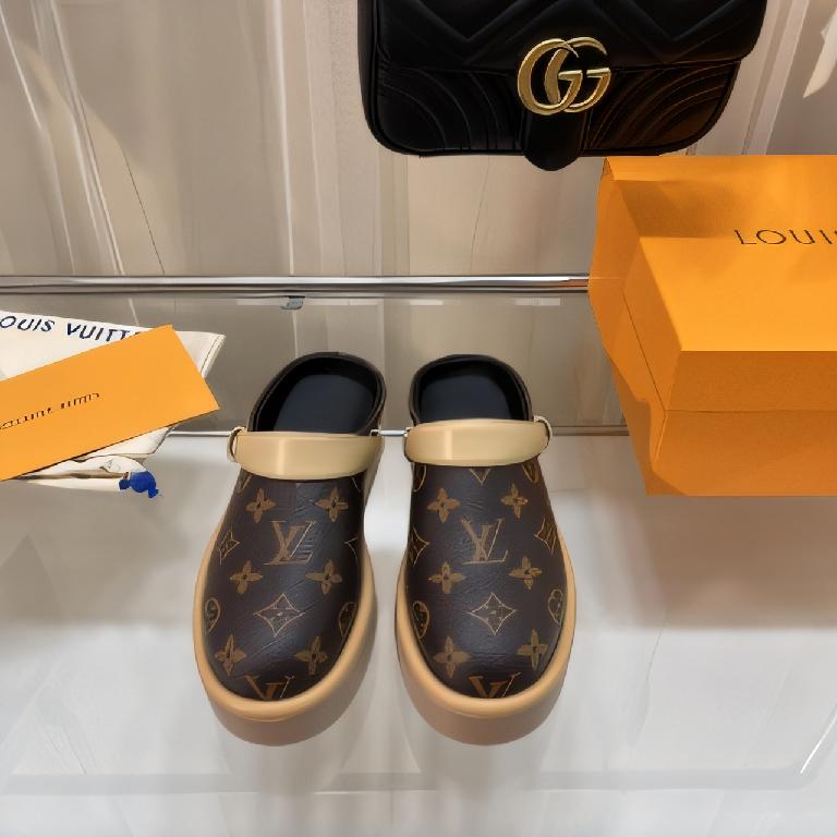 Louis Vuitton Monogram Platform Mule With Strap 经典老花厚底绑带穆勒包头拖鞋(棕黑老花配色款)