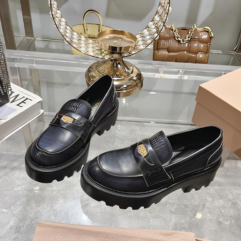 Miu Miu 2024 秋冬新款的厚底乐福鞋 黑色